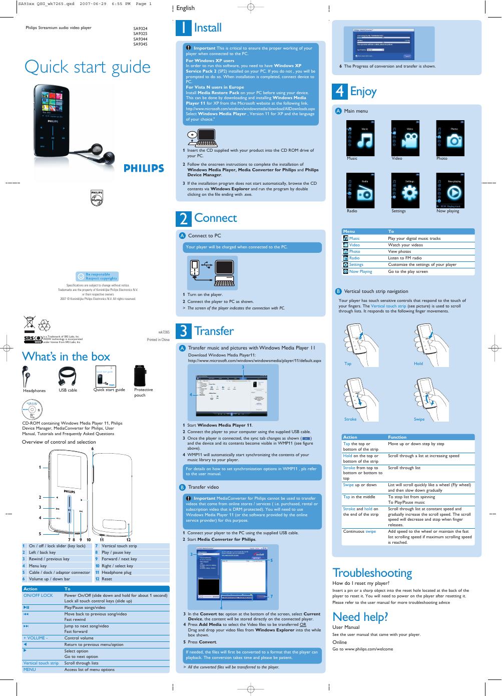 PHILIPS SA9324 SA9325 SA9344 SA9345 Quick start guide.pdf