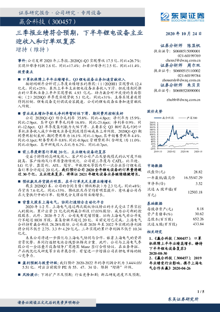 东吴证券:赢合科技(300457)-三季报业绩符合预期,下半年锂电设备主业迎收入和订单双复苏.pdf