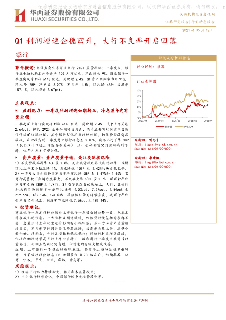 华西证券:银行:Q1利润增速企稳回升,大行不良率开启回落.pdf