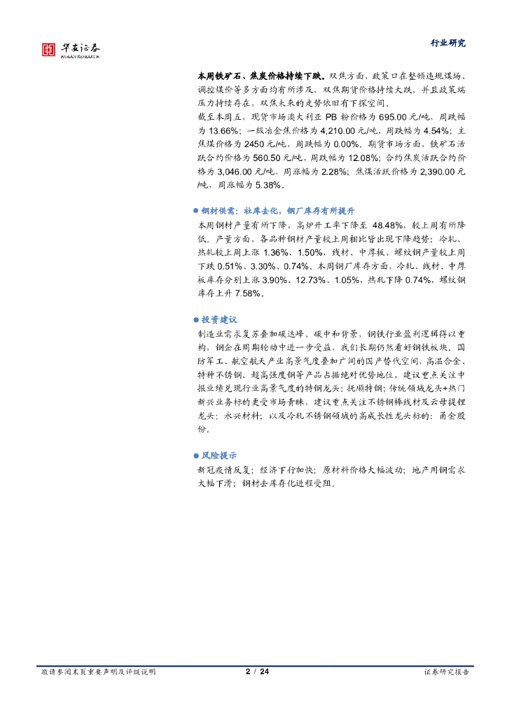 华安证券:钢铁行业周报:供需两弱,钢价持续下跌后或有修复空间.pdf