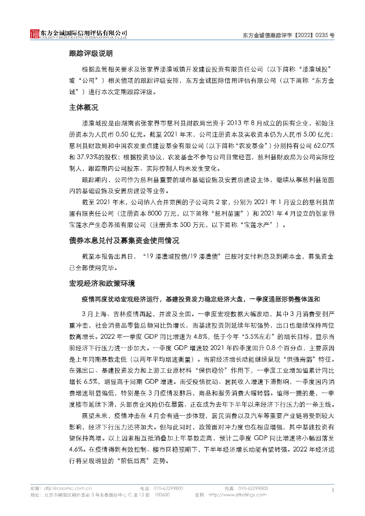 东方金诚:张家界溇澧城镇开发建设投资有限责任公司主体及“19溇澧城投债19溇澧债”2022年度跟踪评级报告.pdf