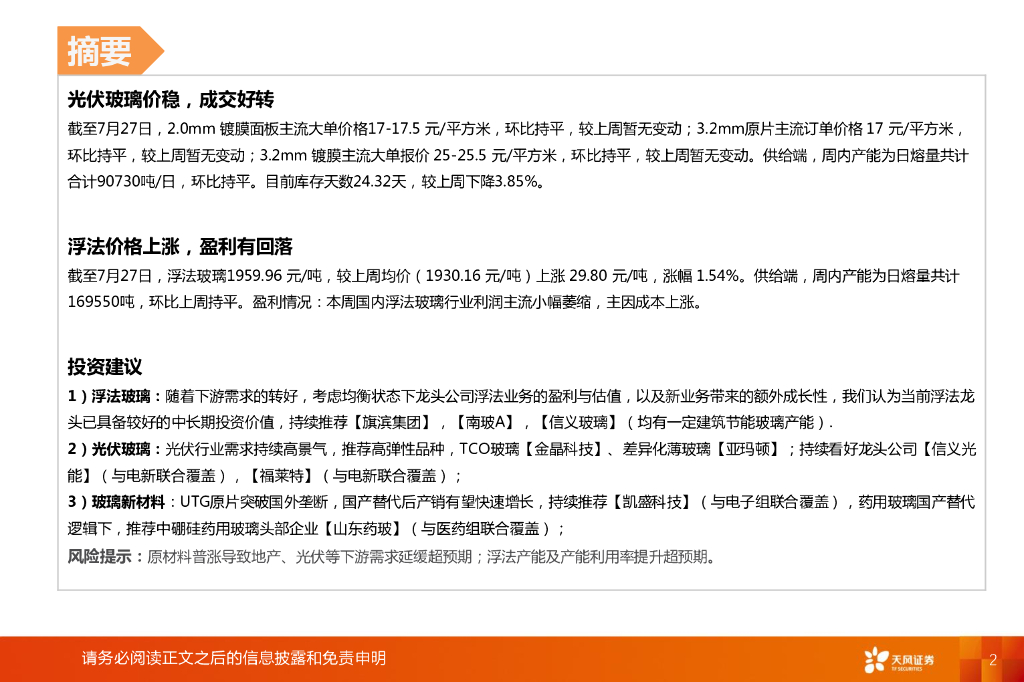 天风证券:玻璃玻纤行业研究周报:光伏玻璃去库,浮法玻璃价格小涨.pdf