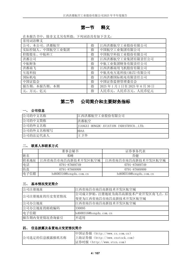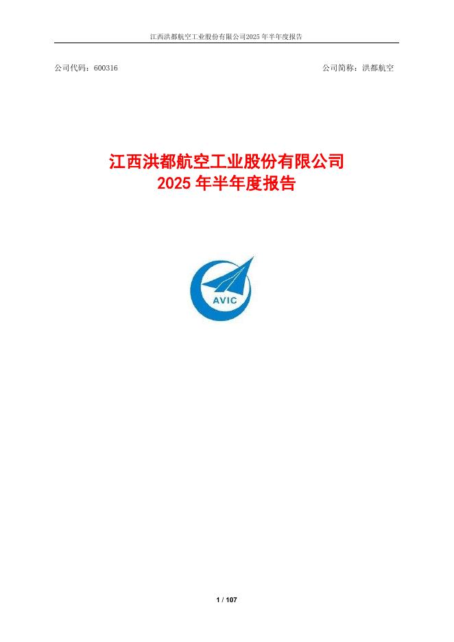 600316-洪都航空:江西洪都航空工业股份有限公司2025年半年度报告.pdf