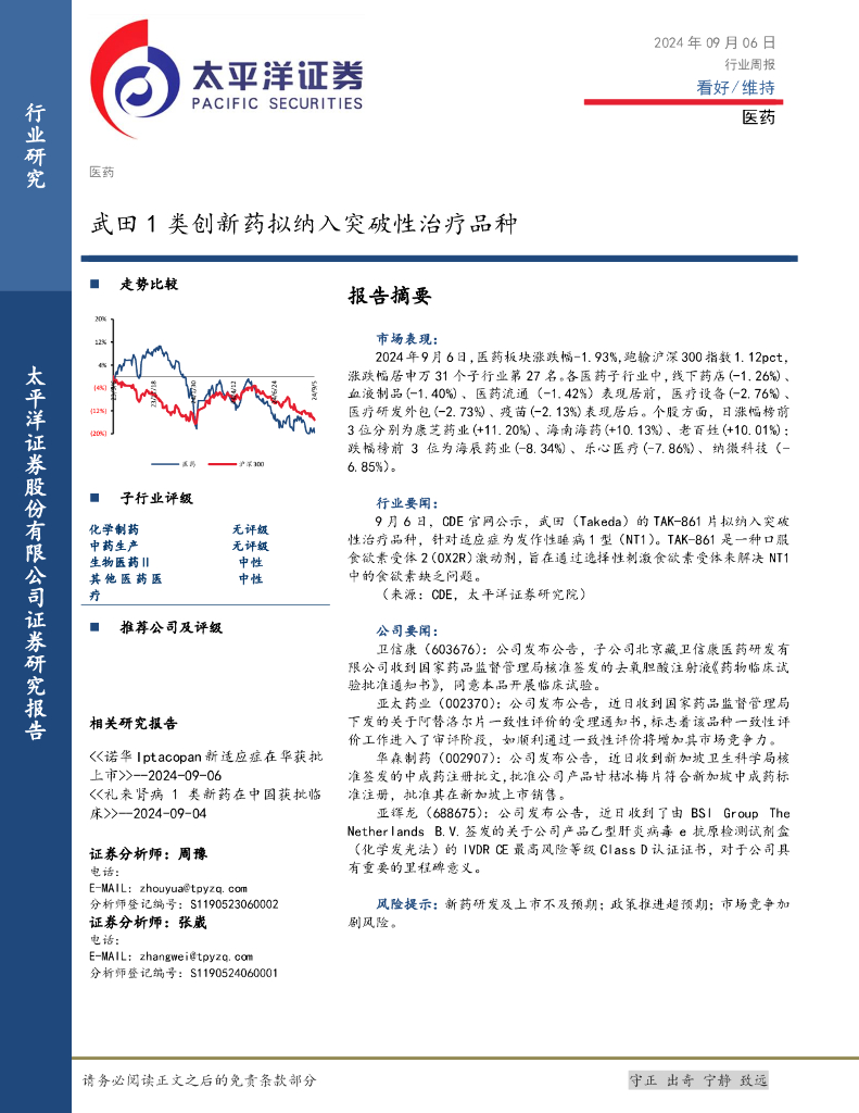 太平洋证券:医药行业周报:武田1类创新药拟纳入突破性治疗品种.pdf