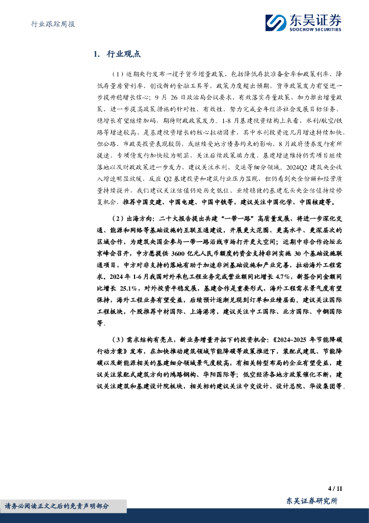 东吴证券:建筑装饰行业跟踪周报:政策发力加码稳增长,关注低估值央企和水利、出海等方向.pdf