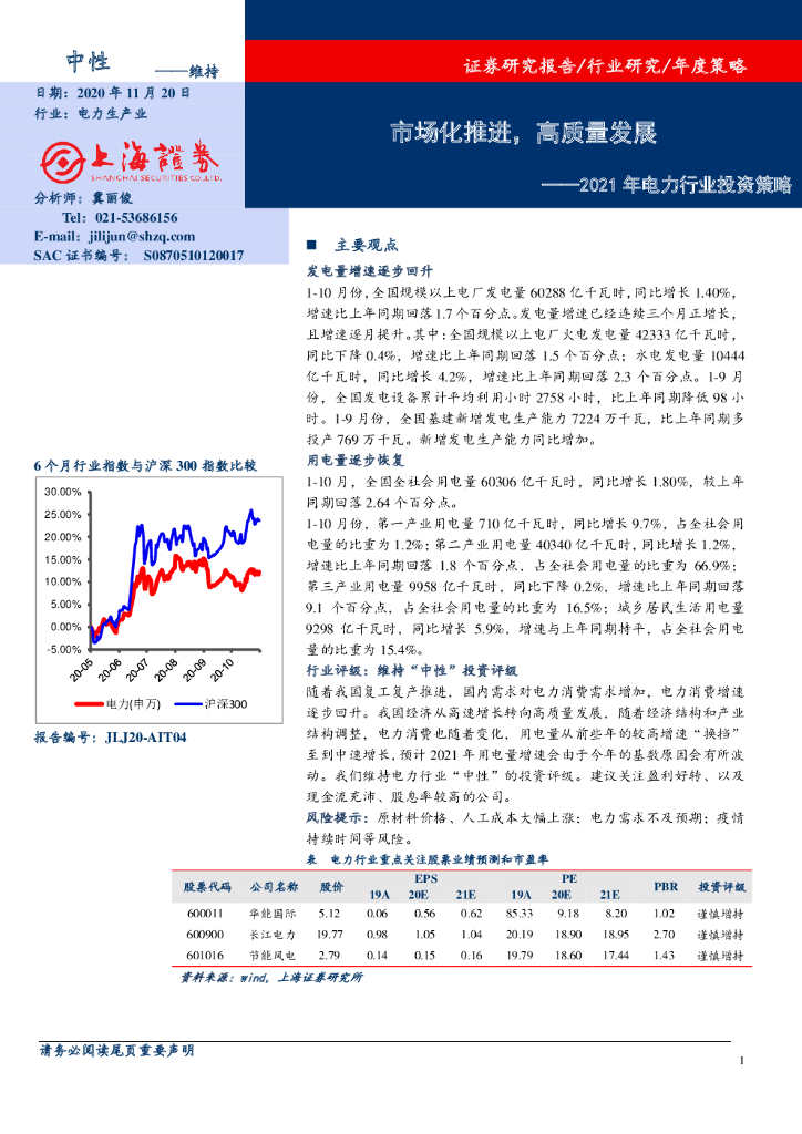 上海证券:2021年电力行业投资策略:市场化推进,高质量发展.pdf