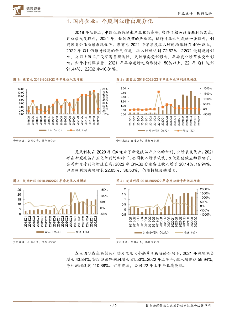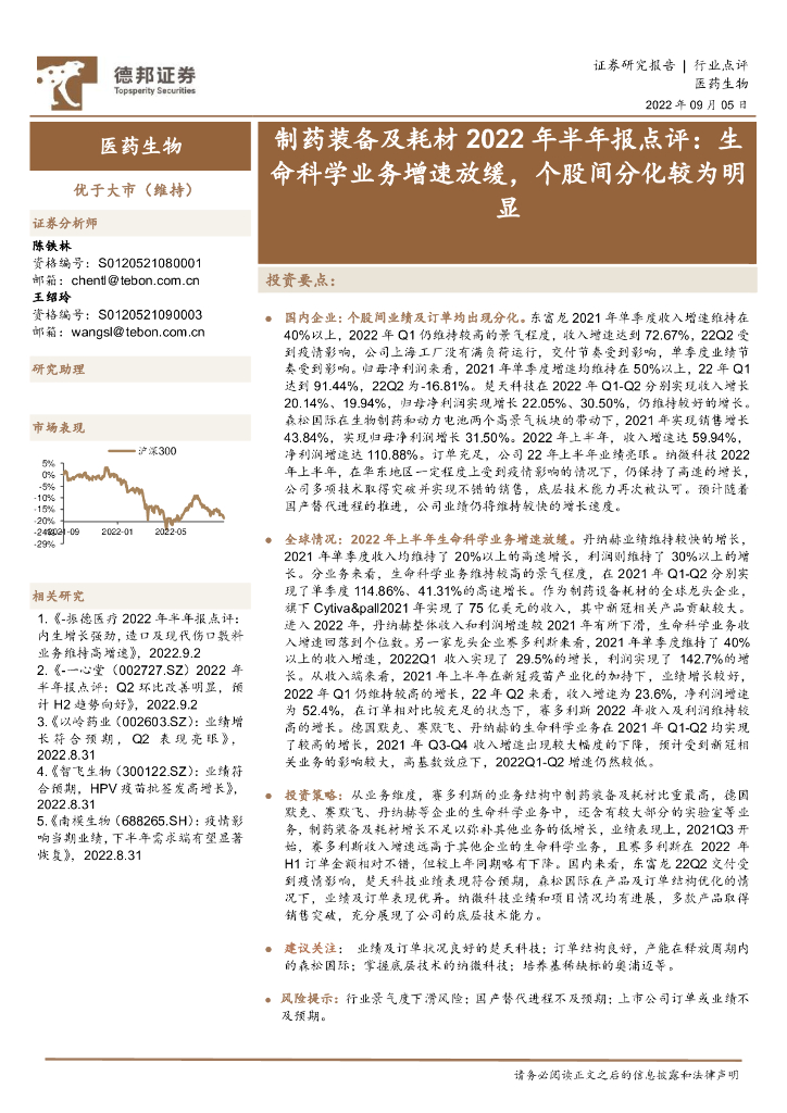德邦证券:制药装备及耗材2022年半年报点评:生命科学业务增速放缓,个股间分化较为明显.pdf