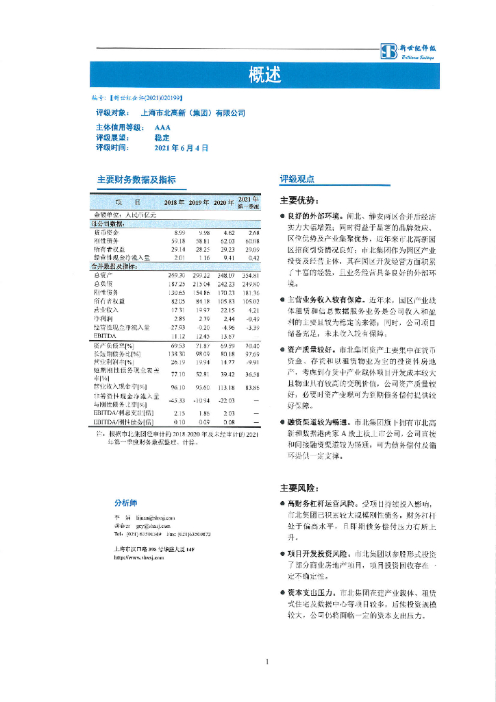 新世纪:上海市北高新(集团)有限公司信用评级报告.pdf