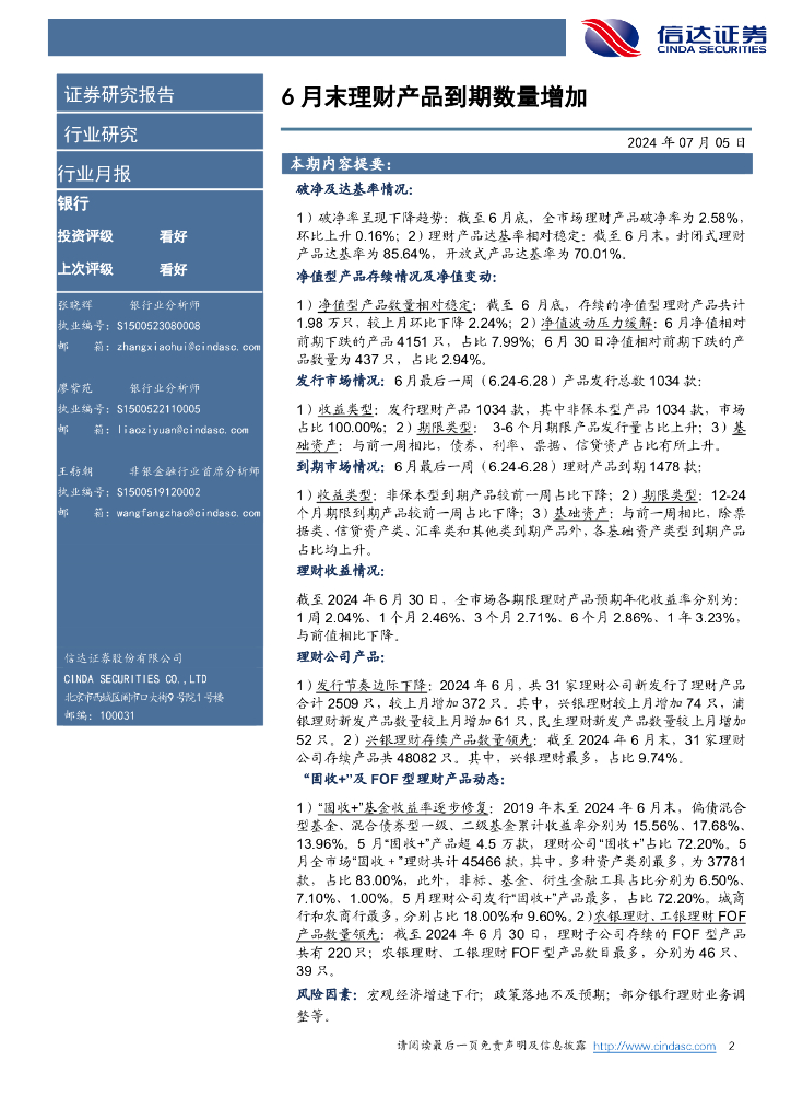 信达证券:银行:6月末理财产品到期数量增加.pdf