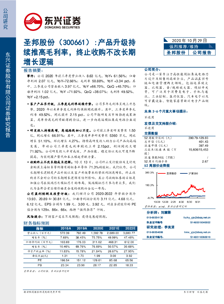 东兴证券:圣邦股份(300661)-产品升级持续推高毛利率,终止收购不改长期增长逻辑.pdf