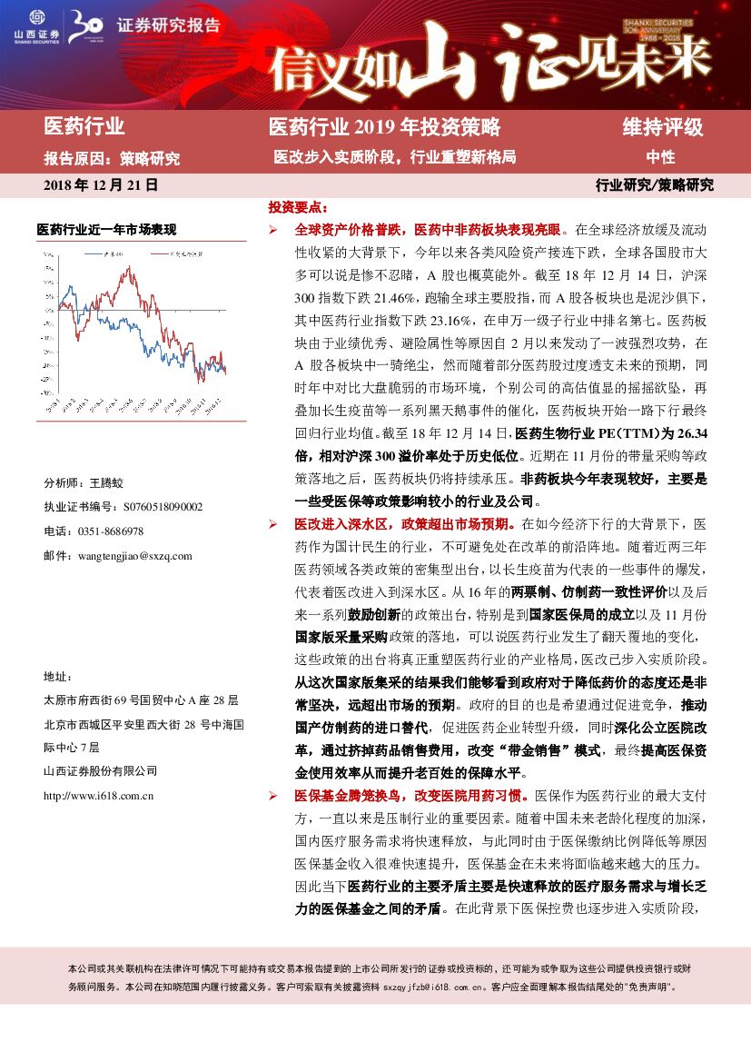 山西证券:医药行业2019年投资策略:医改步入实质阶段,行业重塑新格局.pdf