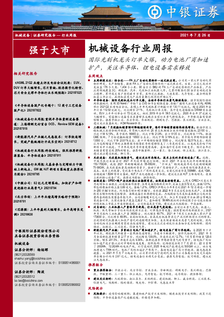 中银证券:机械设备行业周报:国际光刻机龙头订单火爆,动力电池厂商加速扩产,关注半导体、锂电设备需求释放.pdf