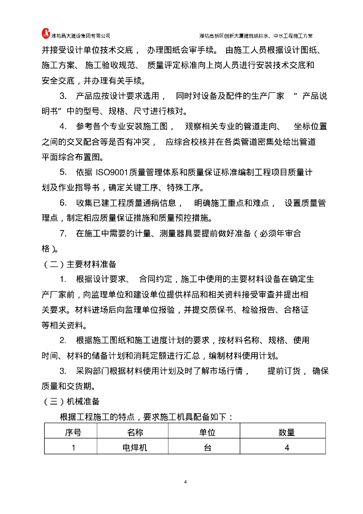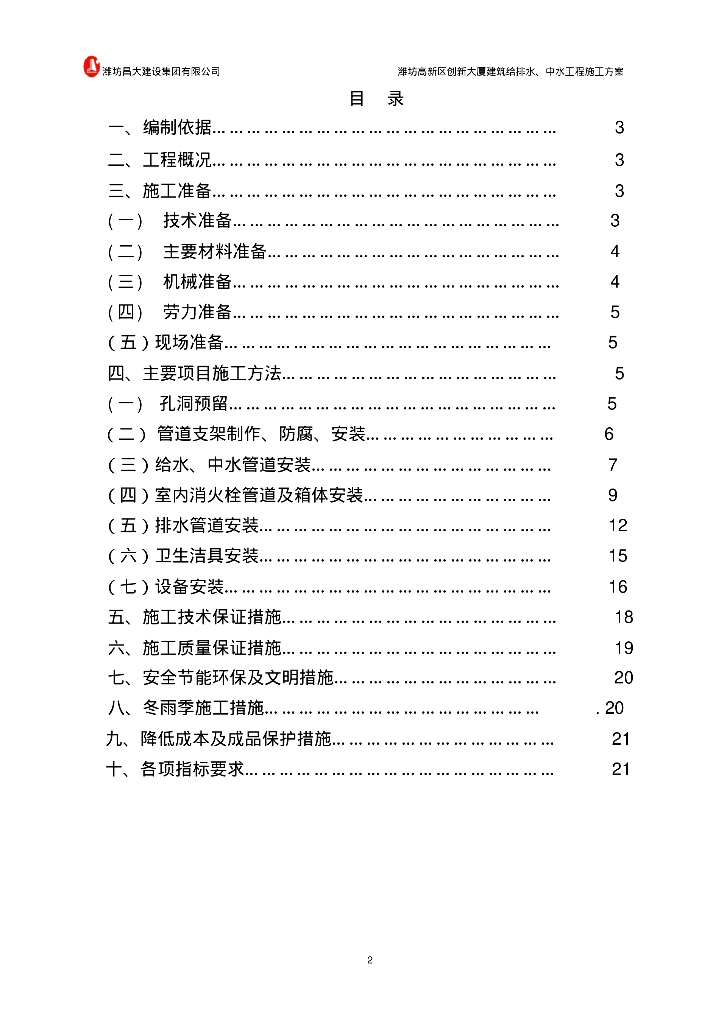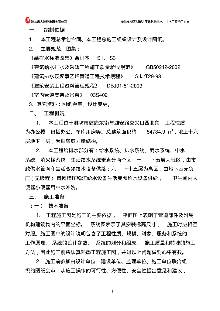 潍坊高新区创新大厦建筑给排水、中水工程施工方案.pdf