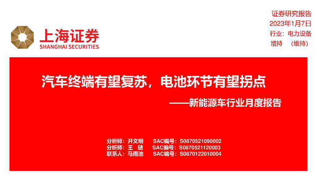 上海证券:新能源车行业月度报告:汽车终端有望复苏,电池环节有望拐点.pdf
