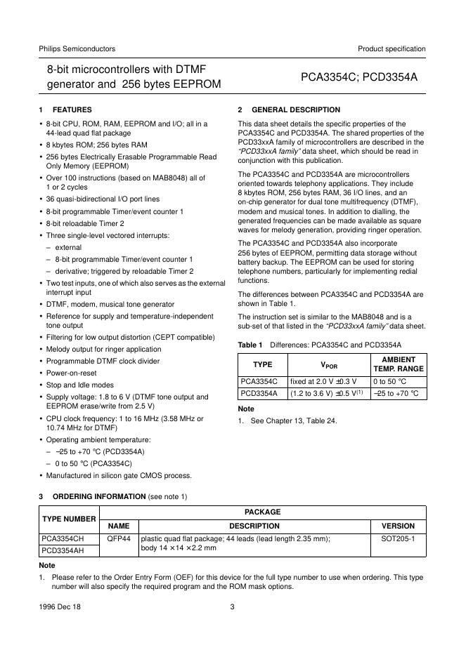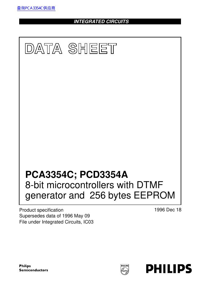 philips PCA3354C PCD3354A 8-bit microcontrollers with DTMF generator and 256 bytes EEPROM 数据手册.pdf