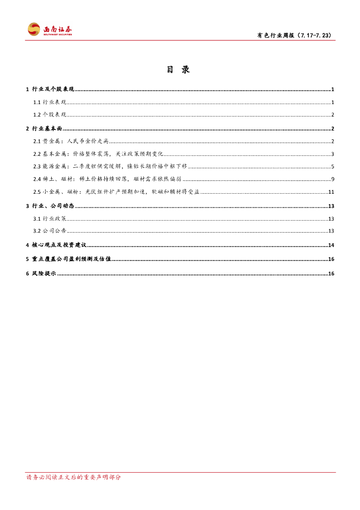 西南证券:有色行业周报:关注政策拐点,推荐铜、黄金和加工板块.pdf