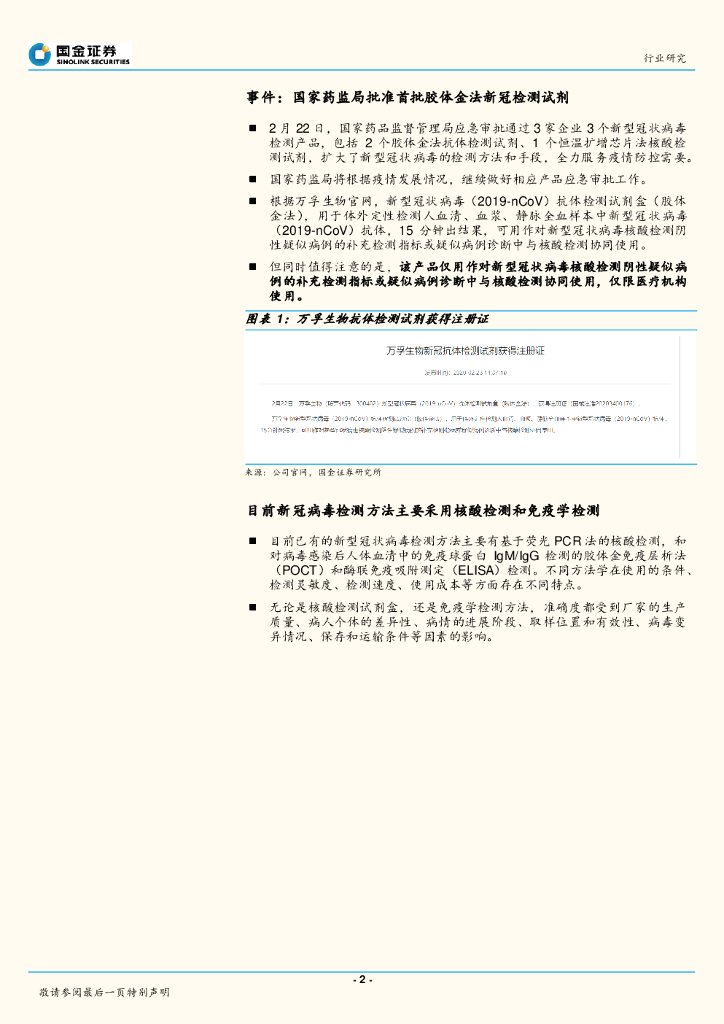 国金证券:医疗诊断行业研究:新冠抗体检测试剂获批 产业进入获证IVD时代.pdf