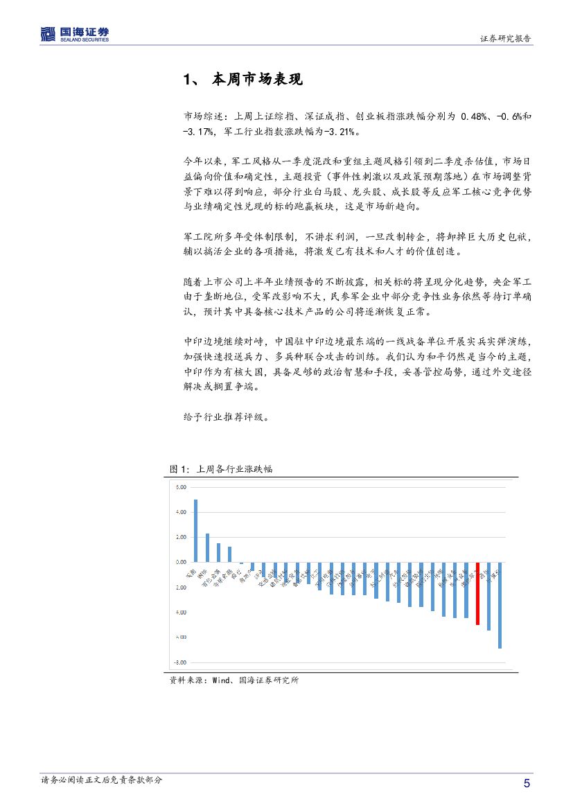 国海证券:国防军工行业周报:高估值个股继续承压,关注装备产业链核心标的.pdf