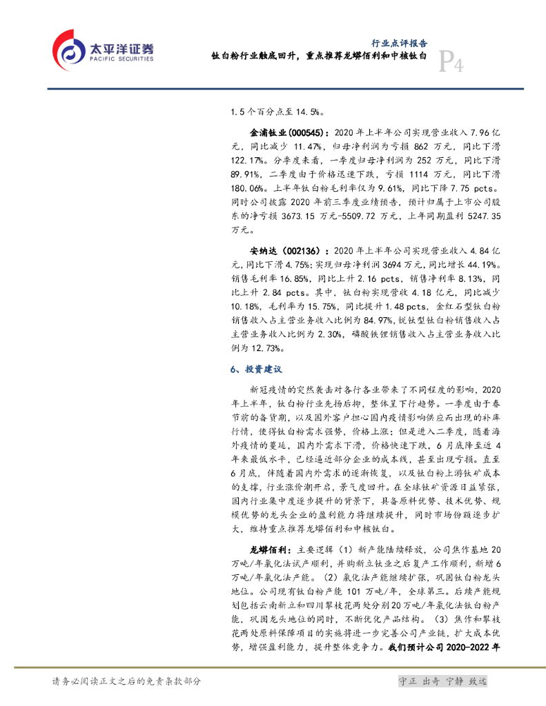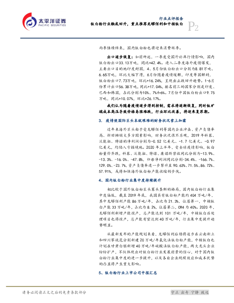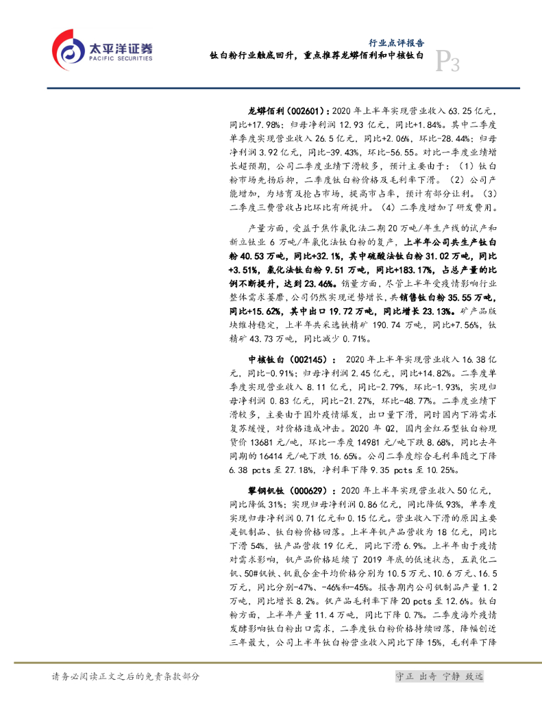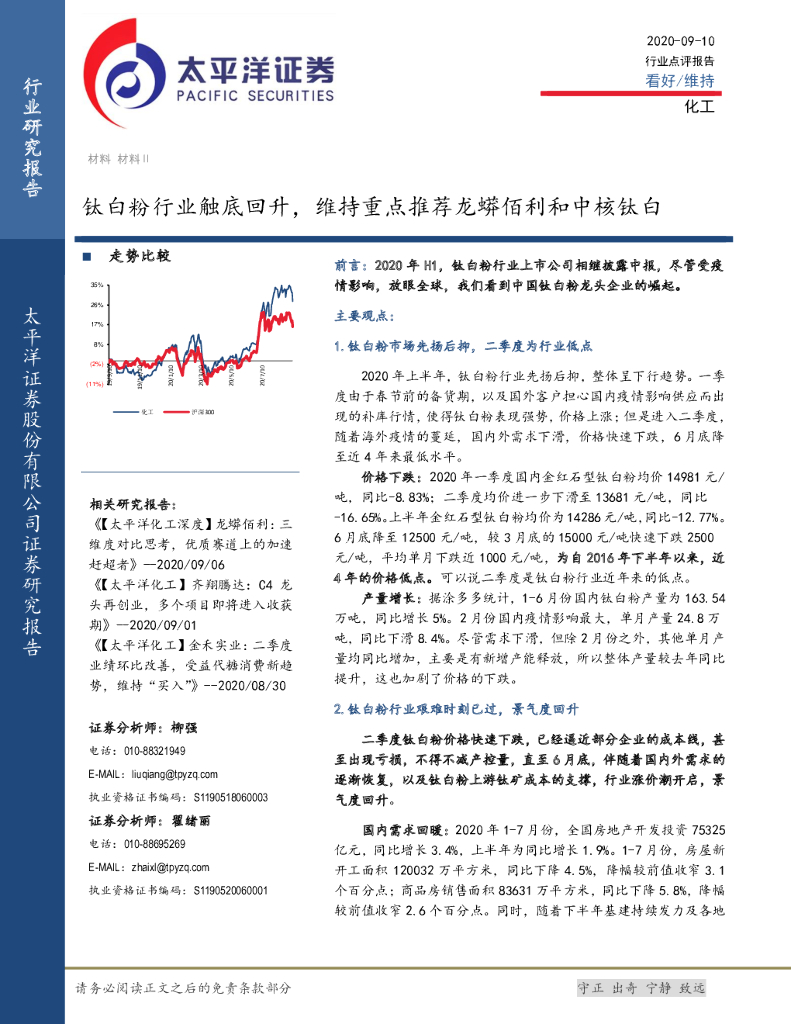 太平洋证券:化工行业点评报告:钛白粉行业触底回升,维持重点推荐龙蟒佰利和中核钛白.pdf