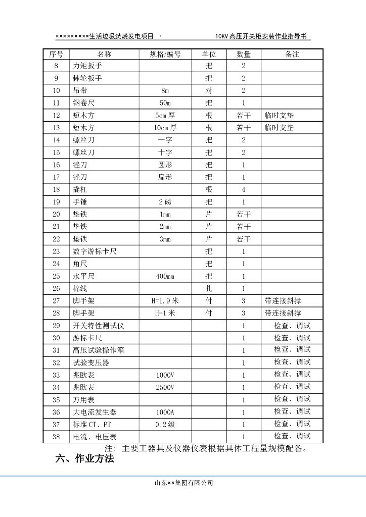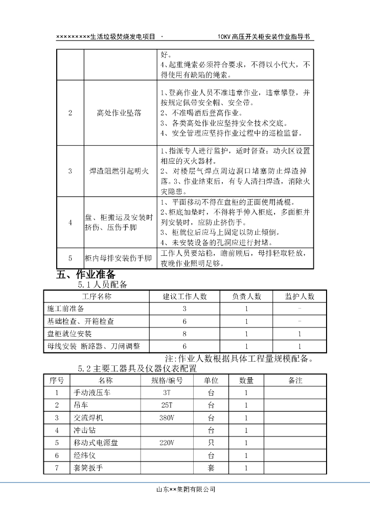 垃圾焚烧发电厂10KV高压开关柜作业指导书.doc