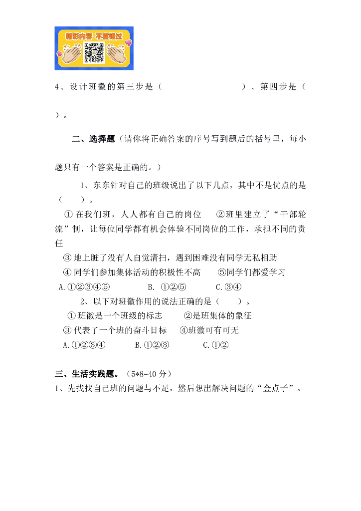 四年级上册道德与法治一课一练 第一课.doc