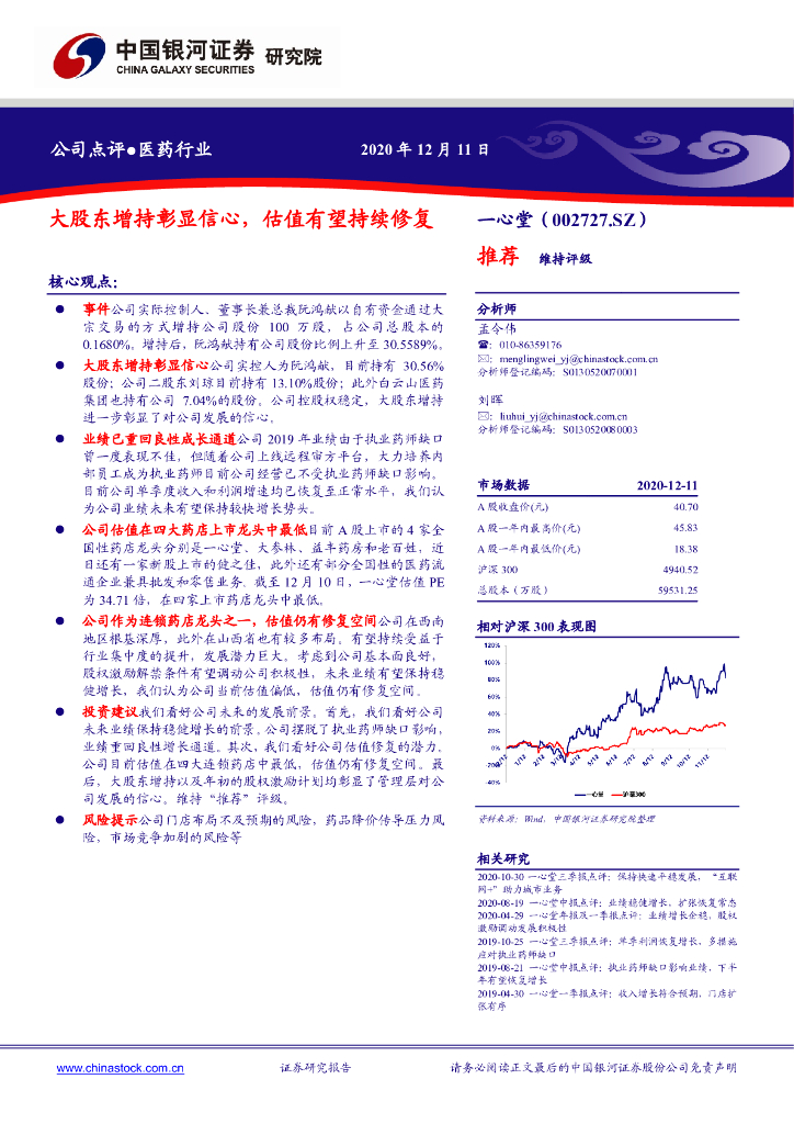 中国银河:一心堂(002727)-大股东增持彰显信心,估值有望持续修复.pdf