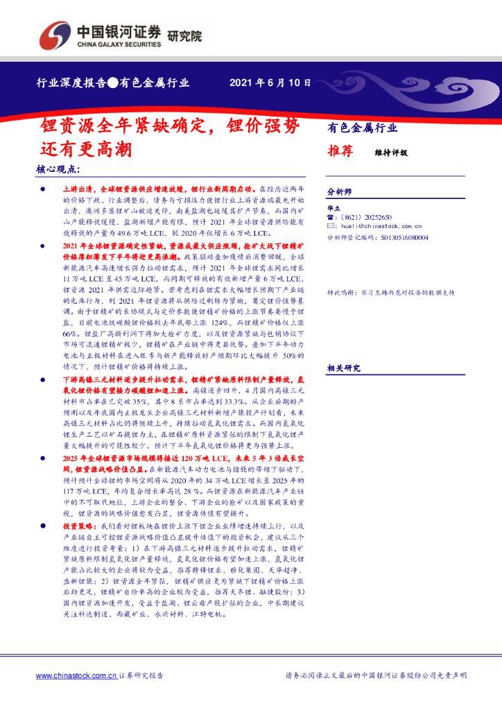 中国银河:有色金属行业深度报告:锂资源全年紧缺确定,锂价强势还有更高潮.pdf