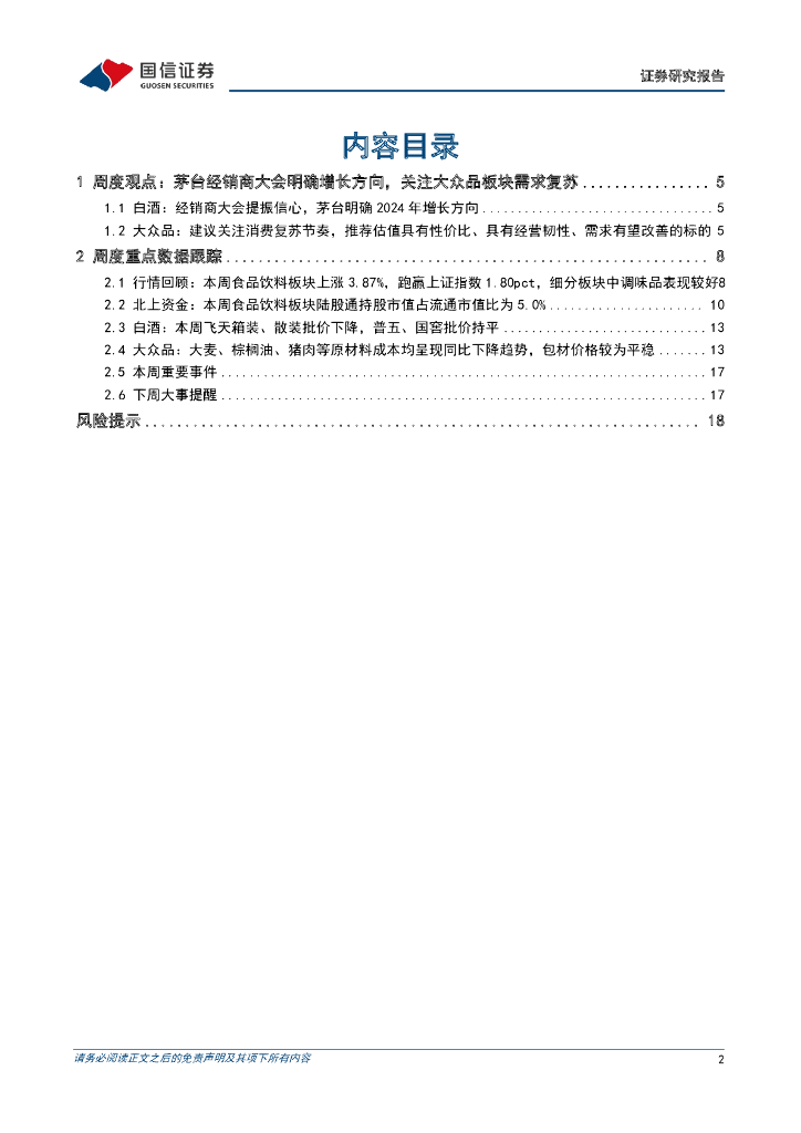 国信证券:食品饮料周报(23年第53周):茅台经销商大会明确增长方向,关注大众品板块需求复苏.pdf