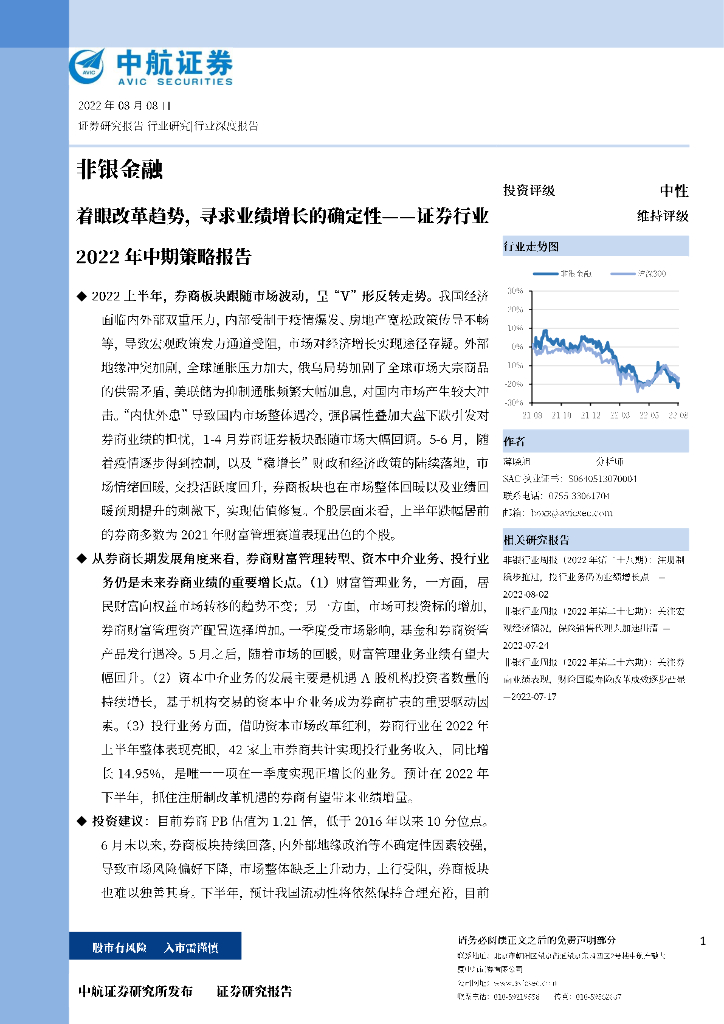 中航证券:证券行业2022年中期策略报告:着眼改革趋势,寻求业绩增长的确定性.pdf