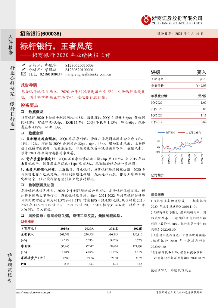 浙商证券:招商银行2020年业绩快报点评:标杆银行,王者风范.pdf