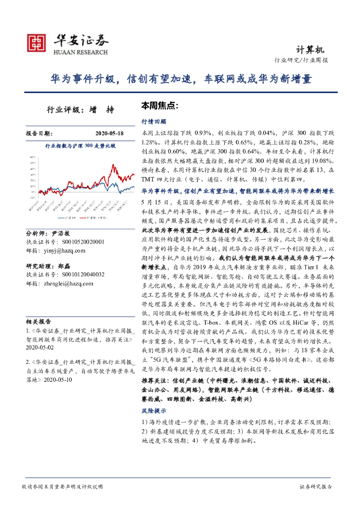 华安证券:计算机行业周报:华为事件升级,信创有望加速,车联网或成华为新增量.pdf