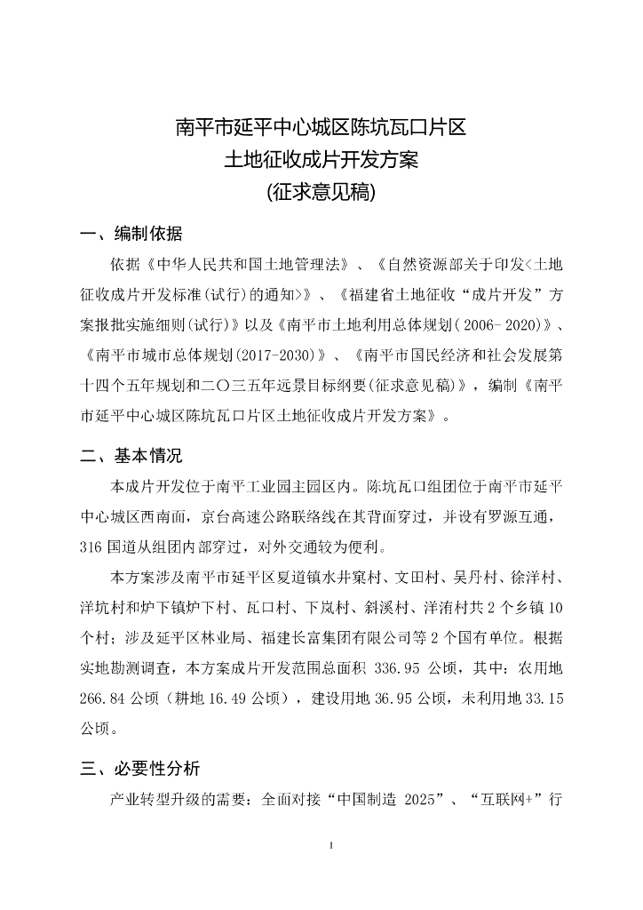 南平市延平中心城区陈坑瓦口片区土地征收成片开发方案(征求意见稿).pdf