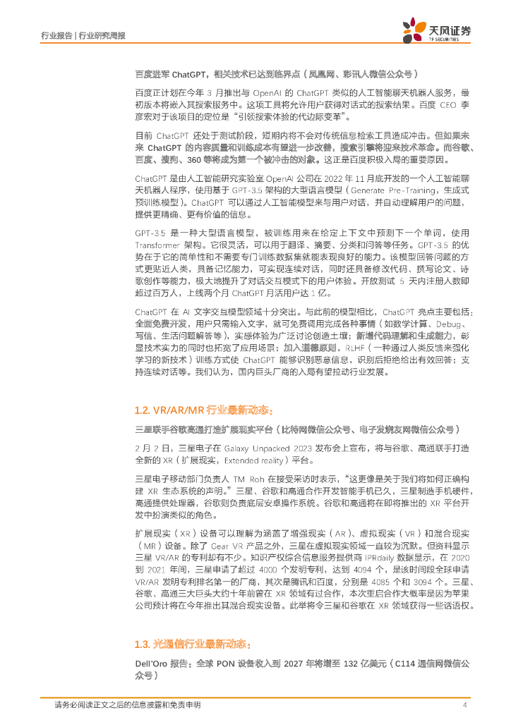天风证券:通信行业研究周报:百度计划进军ChatGPT,AIGC板块持续升温.pdf
