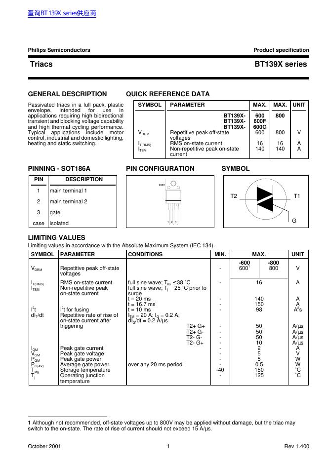 Philips Semiconductors BT139X series 数据手册(1).pdf