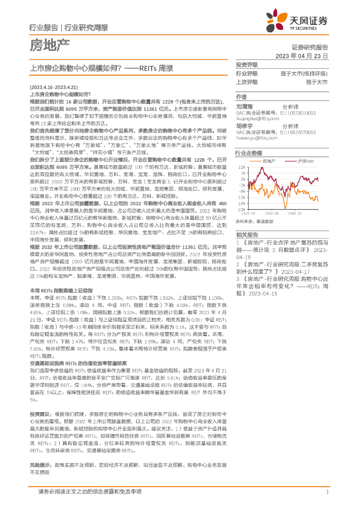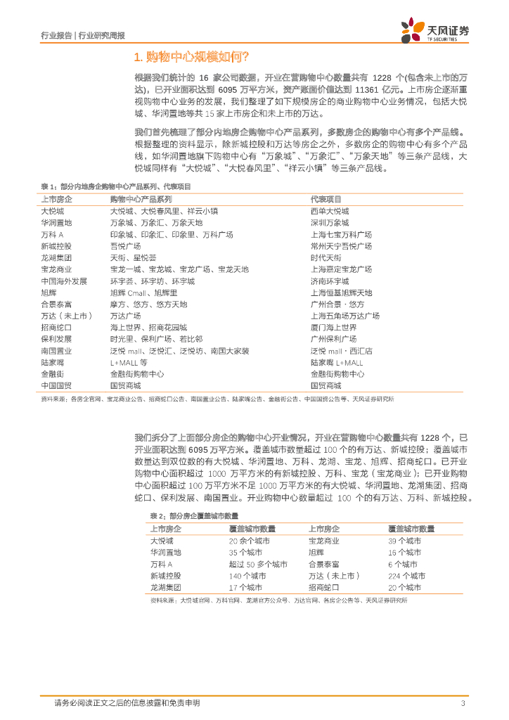 天风证券:房地产REITs周报:上市房企购物中心规模如何?.pdf
