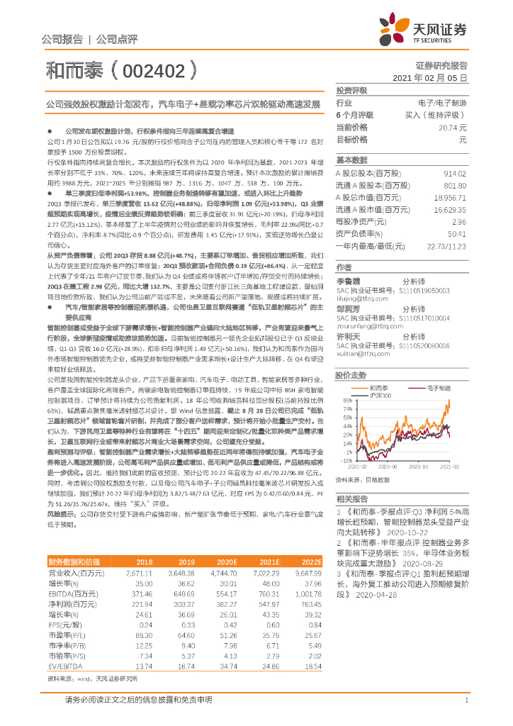天风证券:和而泰(002402)-公司强效股权激励计划发布,汽车电子+星载功率芯片双轮驱动高速发展.pdf
