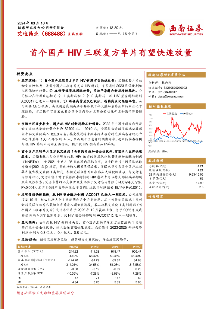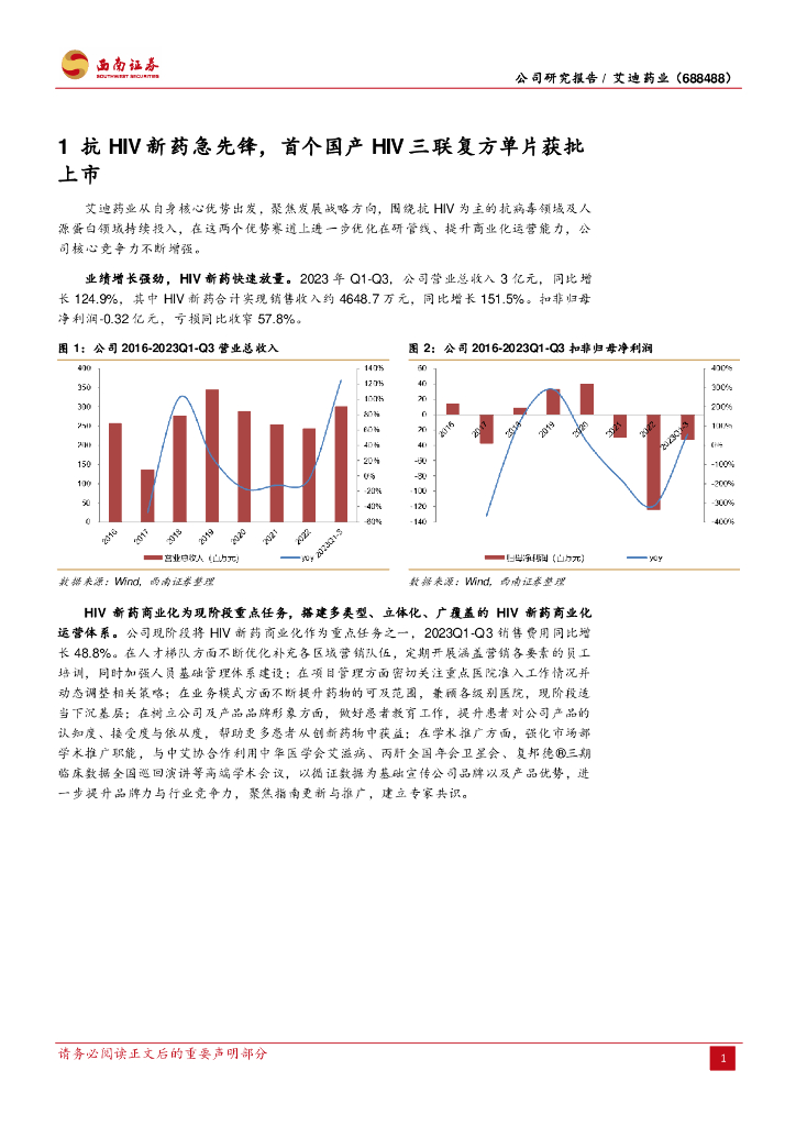 西南证券:艾迪药业(688488)-首个国产HIV三联复方单片有望快速放量.pdf
