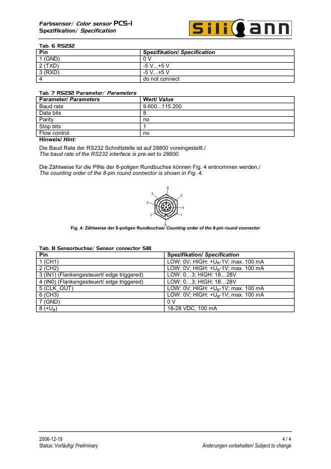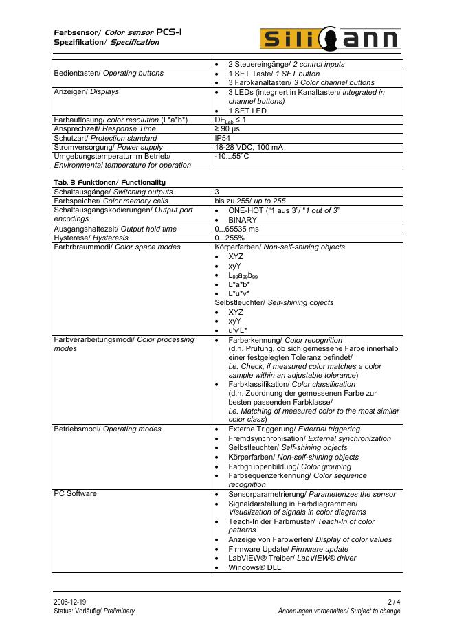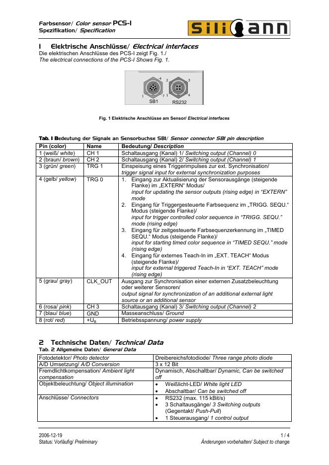SILICANN TECHNOLOGIES Farbsensor/ Color sensor PCS-I Spezifikation/ Specification 数据手册.pdf