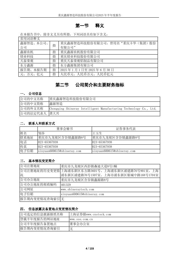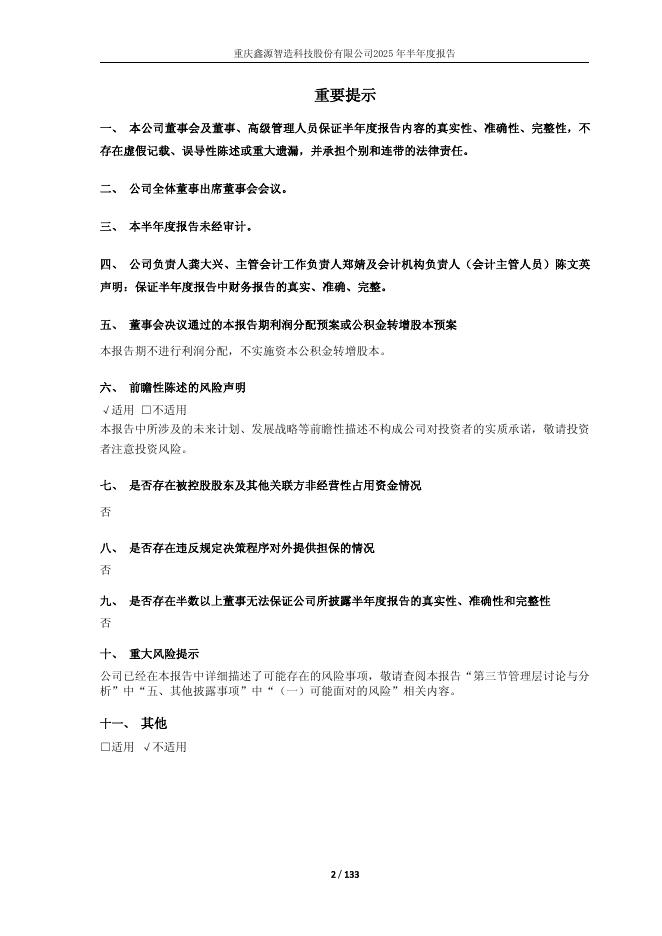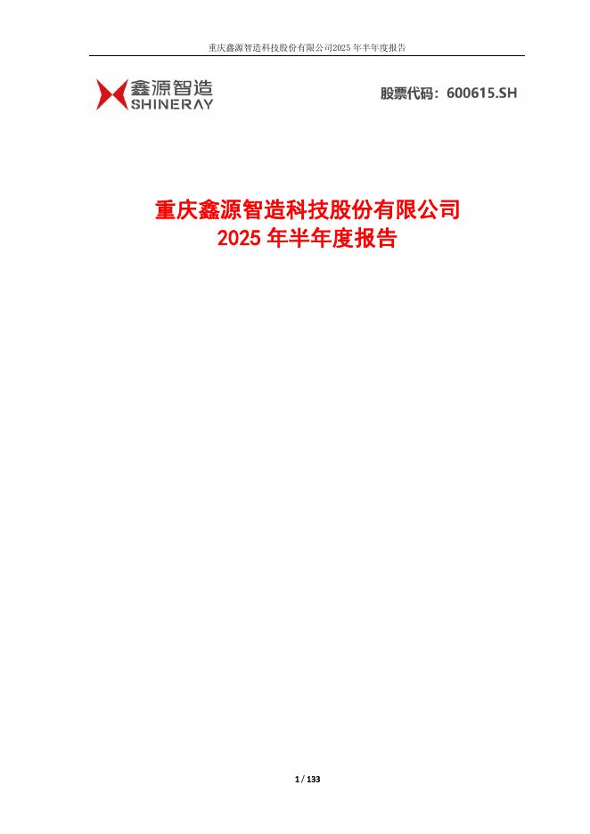 600615-鑫源智造:重庆鑫源智造科技股份有限公司2025年半年度报告(修订版).pdf