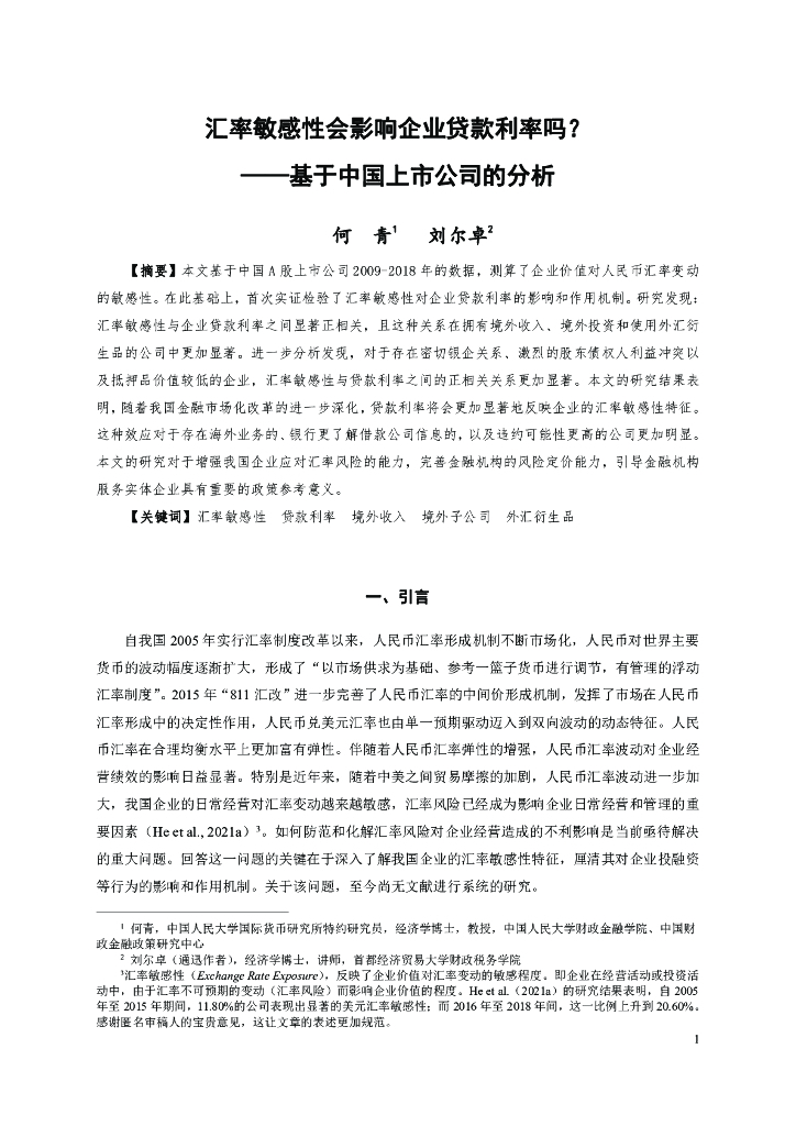 IMI:汇率敏感性会影响企业贷款利率吗?——基于中国上市公司的分析.pdf
