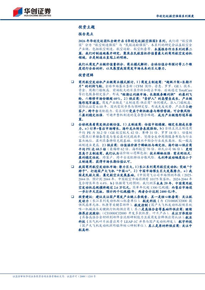 华创证券:华创交运航空强国系列研究(二):技术壁垒到估值高地,全球视角看商用航空发动机产业链.pdf