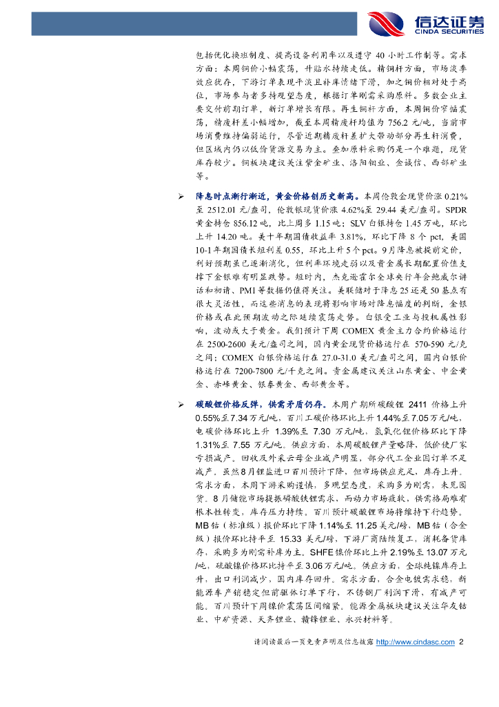 信达证券:有色金属周度报告:美国大幅下修非农就业数据,降息预期支撑贵金属价格.pdf