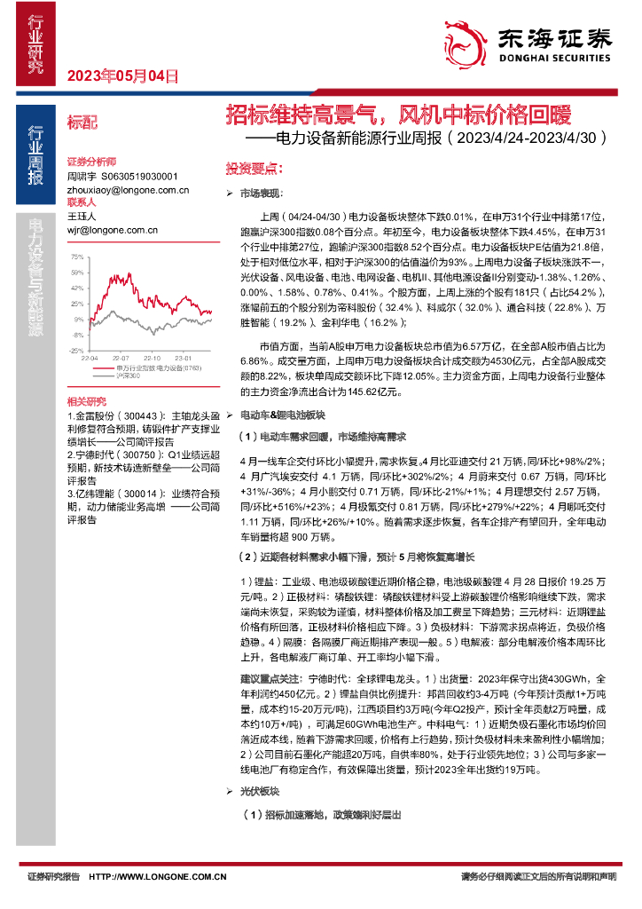 东海证券:电力设备新能源行业周报:招标维持高景气,风机中标价格回暖.pdf