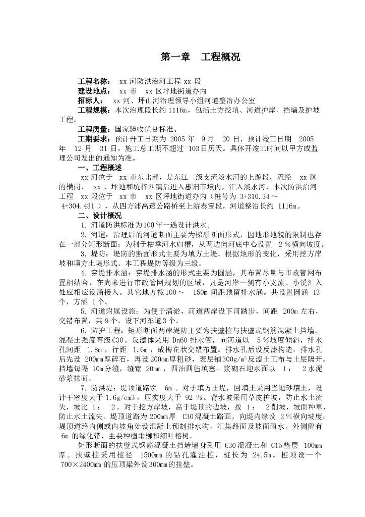 深圳市龙岗河防洪治河工程某段施工组织设计.doc
