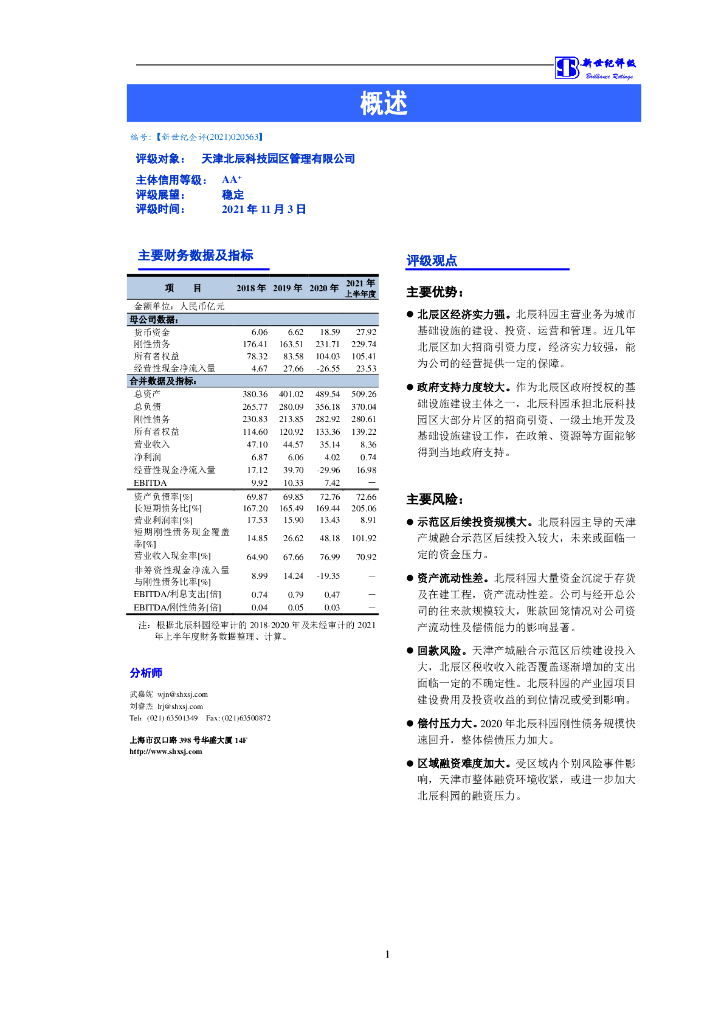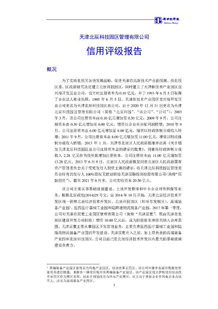 新世纪:天津北辰科技园区管理有限公司信用评级报告.pdf
