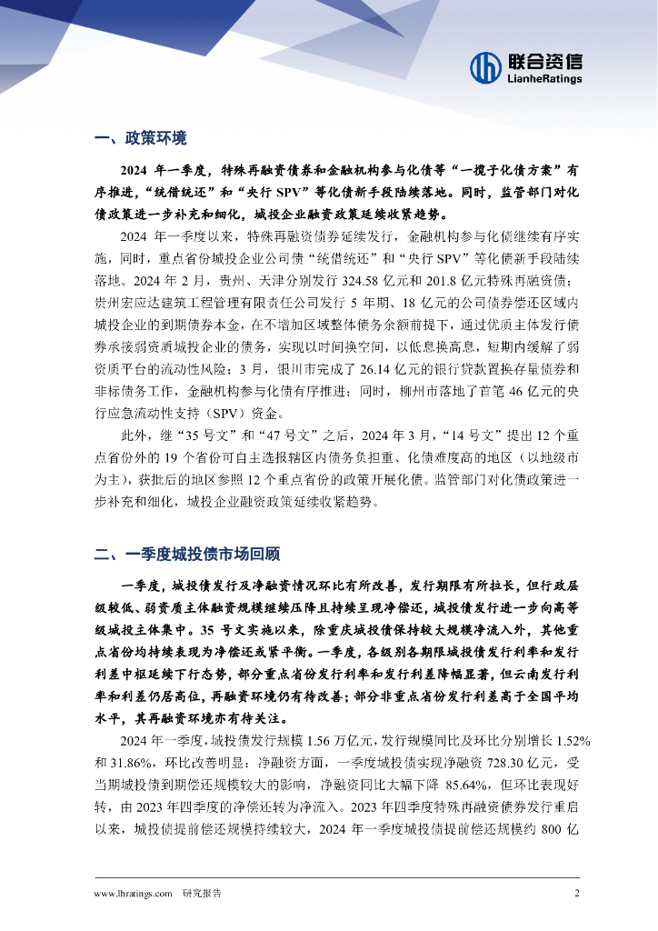 联合资信:化债利好压降利差,政策收紧加快转型——2024年一季度城投债市场分析与展望报告.pdf