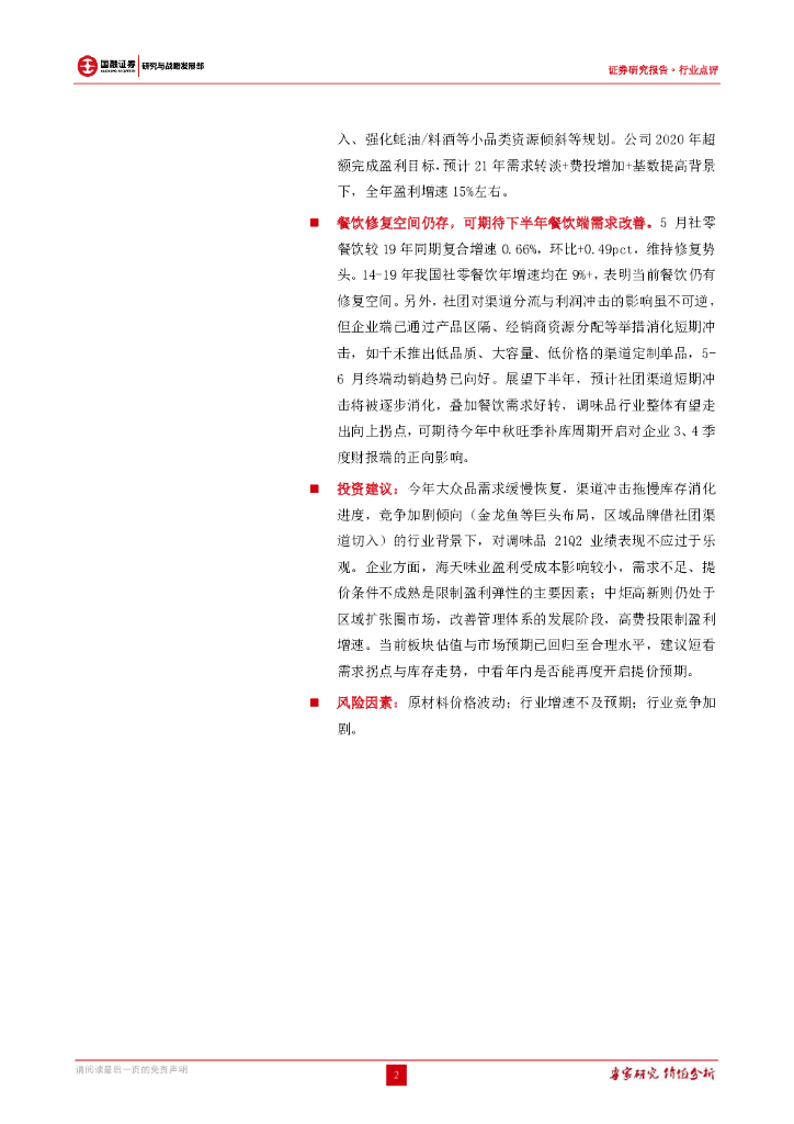 国融证券:调味品二季度业绩前瞻:库存消化难言乐观,静待下半年旺季催化.pdf