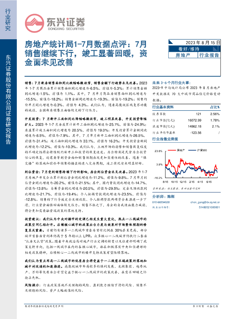 东兴证券:房地产统计局1-7月数据点评:7月销售继续下行,竣工显著回暖,资金面未见改善.pdf
