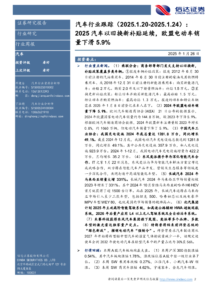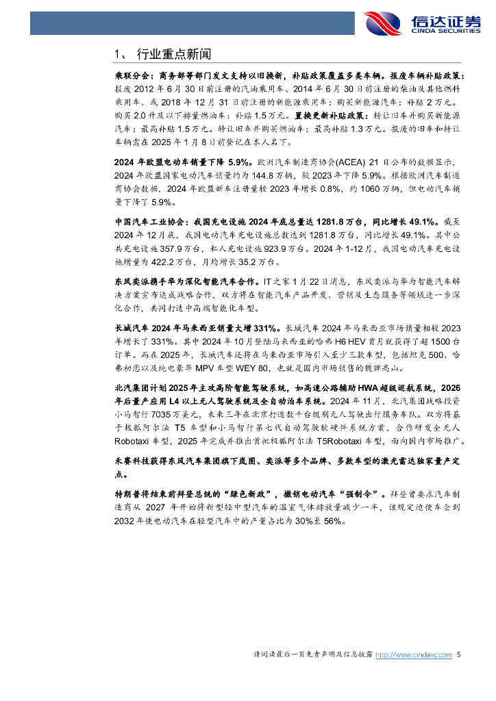 信达证券:汽车行业跟踪:2025汽车以旧换新补贴延续,欧盟电动车销量下滑5.9%.pdf