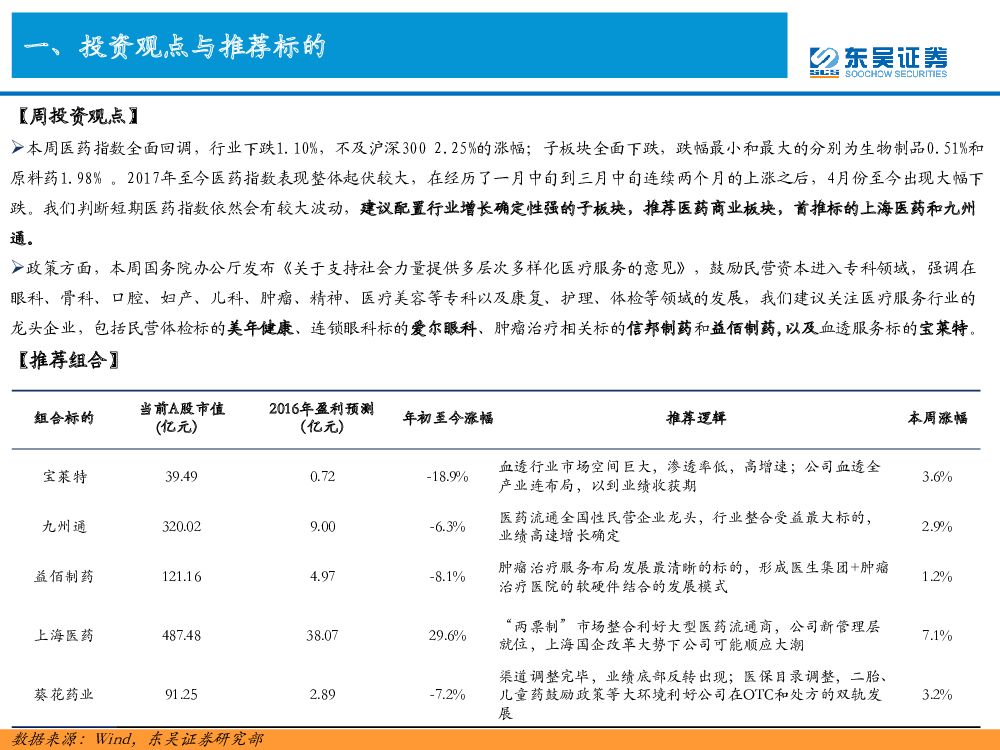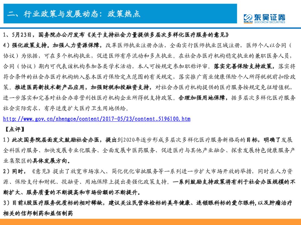 东吴证券:医药行业周观点:国务院发布《关于支持社会力量提供多层次多样化医疗服务的意见》 推荐关注美年健康、爱尔眼科、信邦制药、益佰制药、宝莱特.pdf